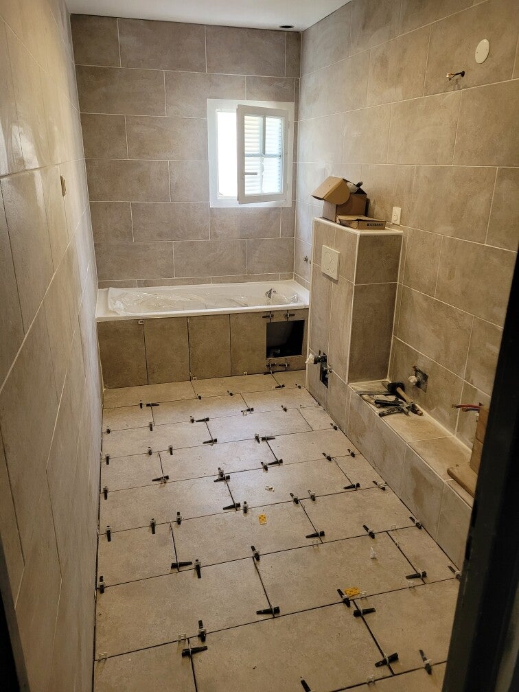 Nous avons effectué la rénovation complète d'une salle de bain, transformant un espace obsolète en un lieu moderne et fonctionnel, répondant parfaitement aux attentes de nos clients. Du sol au plafond, chaque détail a été pensé pour le confort et l'esthétisme.